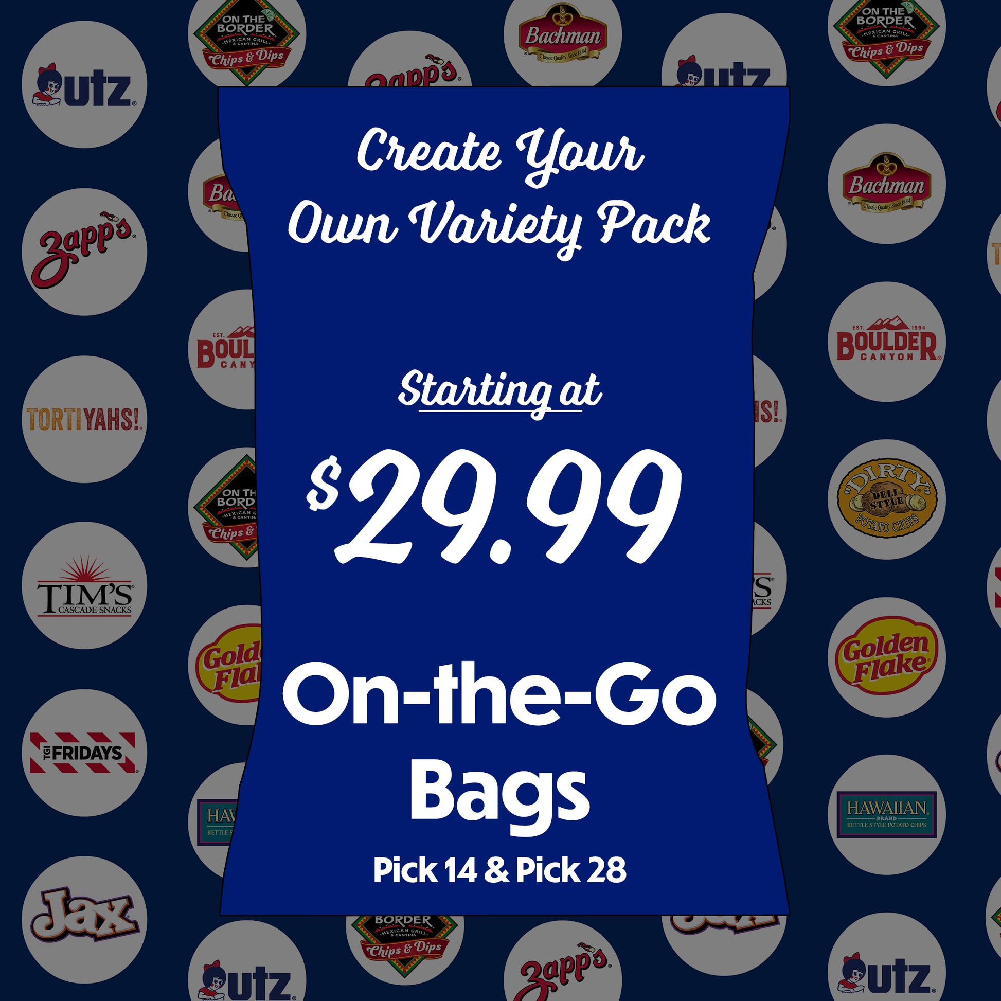 Build your On-the-Go snack bundle! Pick 14 or 28 mini bags for $29.99 — Utz chips, pretzels & more, crafted for flavor, crunch, and convenience.
